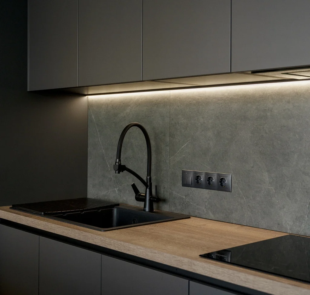 Планировка кухни должна быть в первую очередь удобной. Важно продумать каждую линию и поворот так, чтобы пространство оставалось эргономичным и эстетичным. Здесь не бывает мелочей: даже одна неудачно размещенная розетка может существенно снизить комфорт использования рабочей зоны.