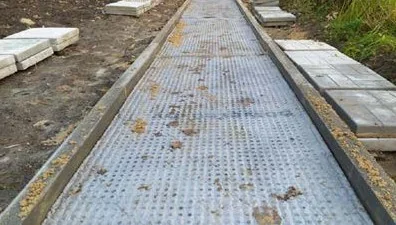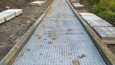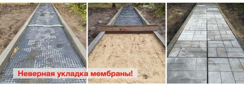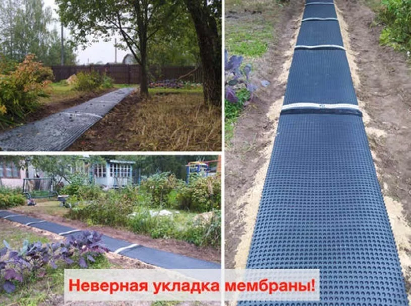 - Легко монтируется. Сделать дорожку с мембраной в разы проще, чем с бетонным основанием.