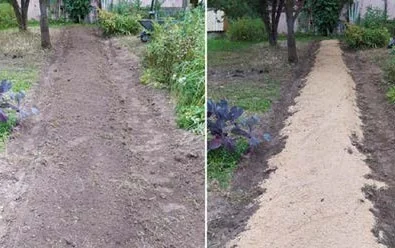 Первым делом нужно было разбить грунт культиватором. Без него никак: почва тяжёлая, в основном глинистая, да к тому же плотно утоптанная, так что ковырять лопатой — не вариант. Но выручил старый добрый культиватор «Крот». Им вспахали дернину, а потом убрали ее верхний слой.