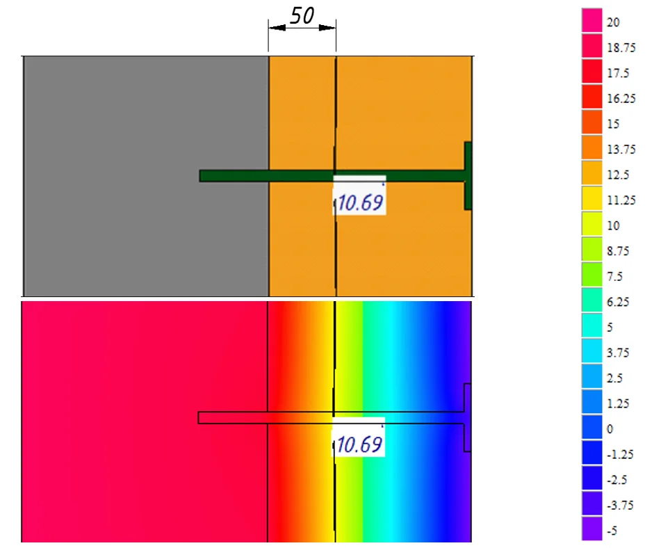 Если температура «за бортом» повысится до -5°C, ТР сместится во внешнюю сторону и окажется в 5 см от границы материалов.