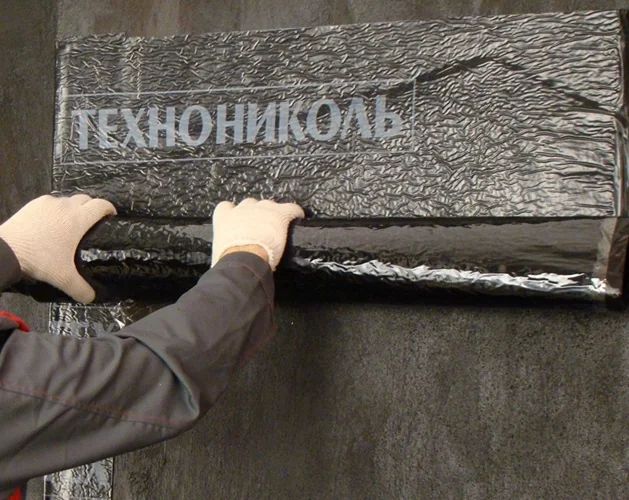 В процессе укладки нет необходимости применения открытого огня, как это происходит в классическом варианте наплавления битумной гидроизоляции. Для монтажа Гидроизоляции фундамента ТЕХНОНИКОЛЬ нужно только снять защитную пленку и приклеить полотно к фундаменту. В итоге скорость работ повышается в разы, нет нужды нанимать строителей, приклеить материал вполне можно и самостоятельно.