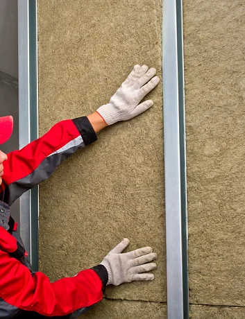 При использовании каменной ваты ТЕХНОНИКОЛЬ нужно отмерить и отрезать необходимую длину материала при помощи ножовки или пилы с мелкими зубьями. Укладку в металлический каркас проводят последовательно, начиная с угла, и плотно прижимая торцы между собой. Использовать дополнительное крепление при монтаже не обязательно. Важно не допускать появления зазоров и провисания материала между элементами каркаса.